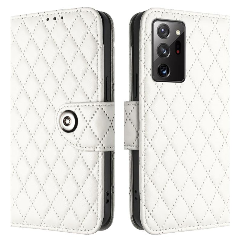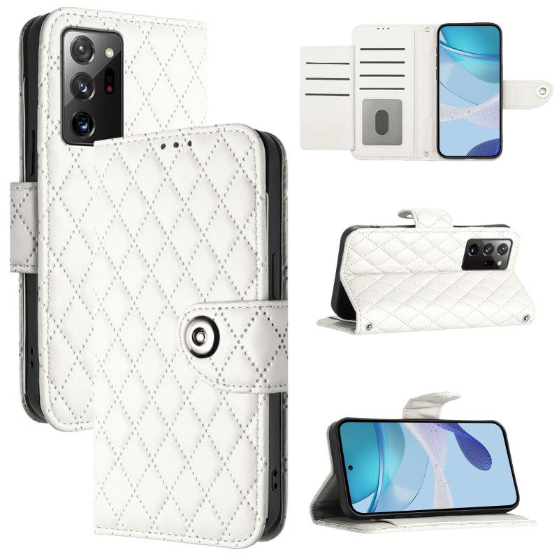 For Samsung Galaxy Note20 Ultra Rhombic Texture Flip Leather Phone Case with Lanyard(White)