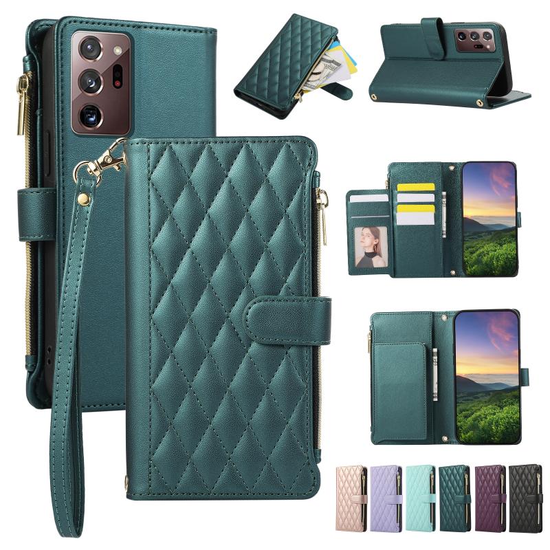For Samsung Galaxy Note20 Ultra Rhombic Zipper Wallet Leather Phone Case(Green)