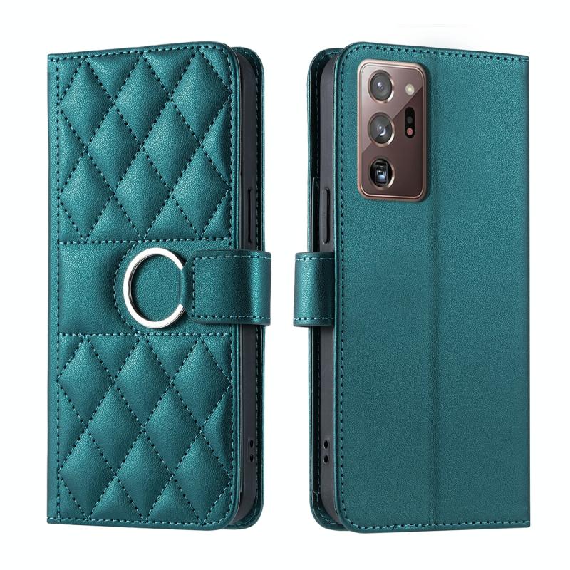 For Samsung Galaxy Note20 Ultra Ring Buckle Rhombic Leather Phone Case(Green)