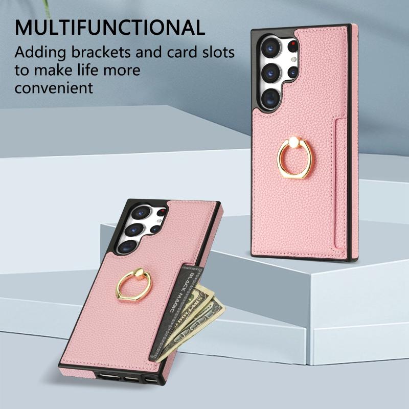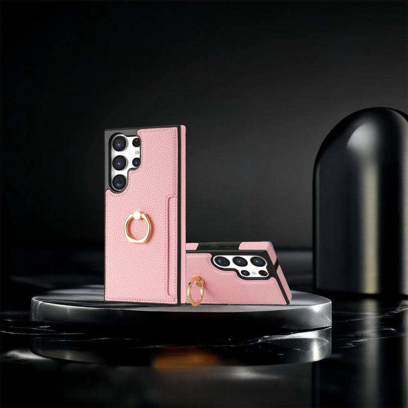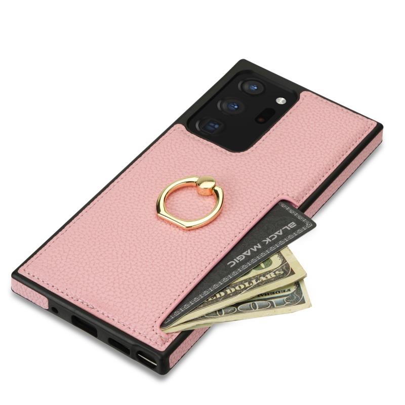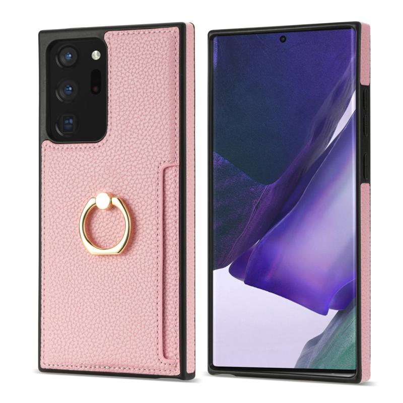 For Samsung Galaxy Note20 Ultra Ring Card Litchi Leather Back Phone Case(Pink)