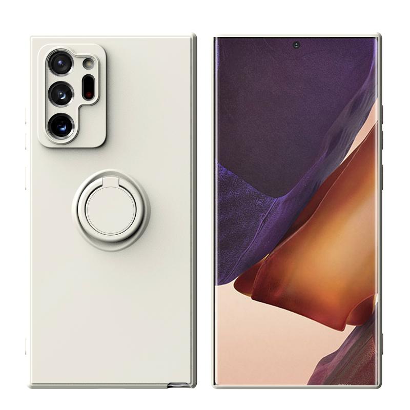 For Samsung Galaxy Note20 Ultra Ring Kickstand Silicone Phone Case(Antique White)