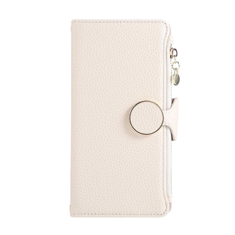 For Samsung Galaxy Note20 Ultra Round Buckle Zipper Wallet Leather Phone Case with Crossbody Strap(White)