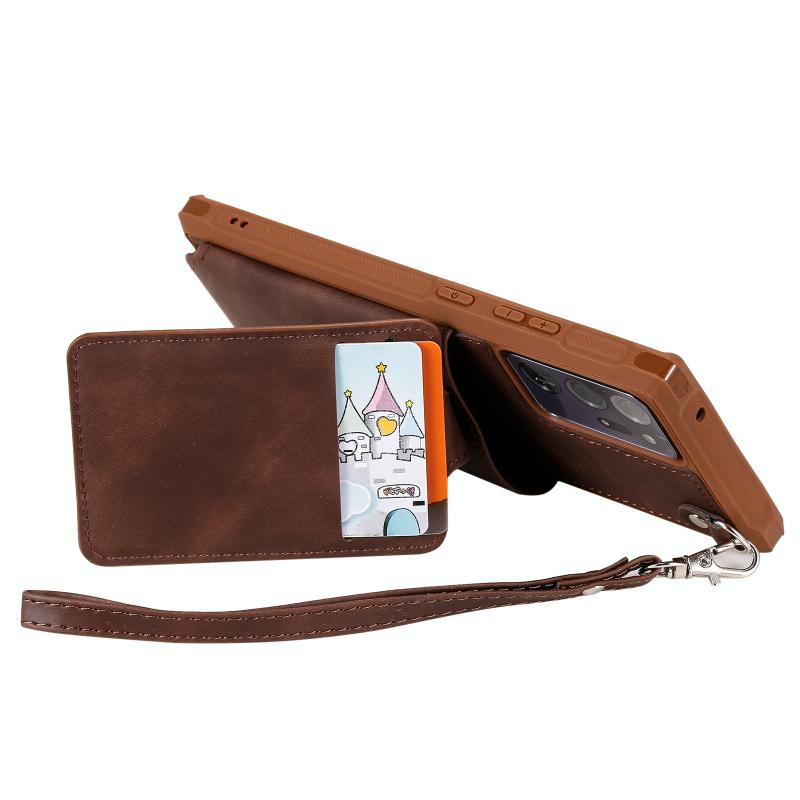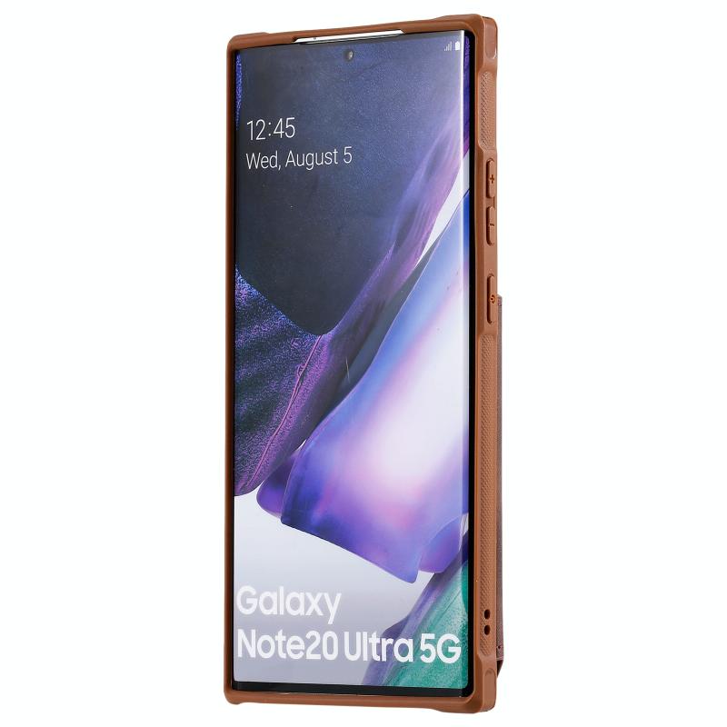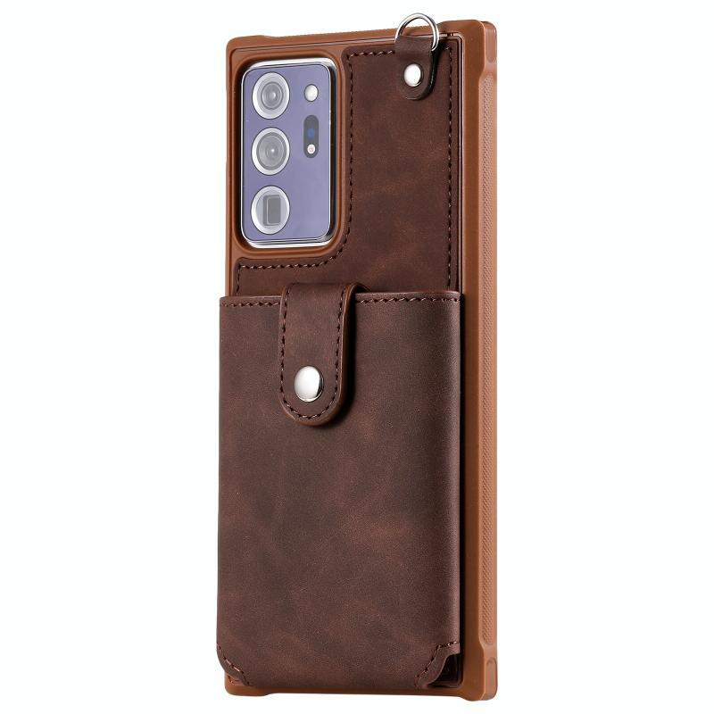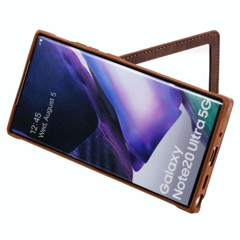 For Samsung Galaxy Note20 Ultra Shockproof Protective Case with Mirror & Card Slot & Short Lanyard(Coffee)