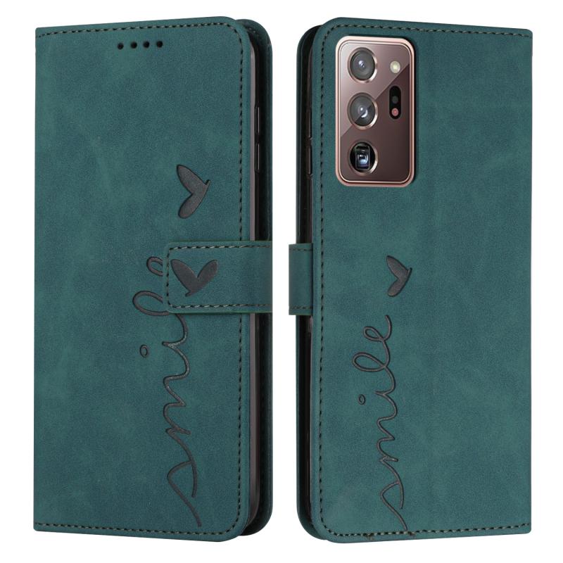 For Samsung Galaxy Note20 Ultra Skin Feel Heart Pattern Leather Phone Case(Green)