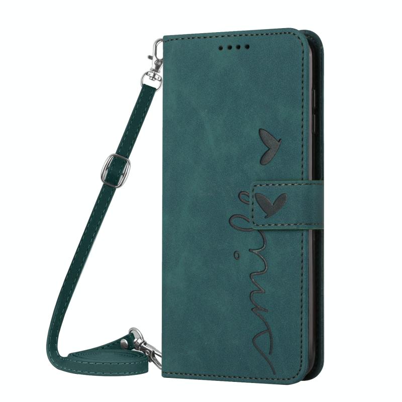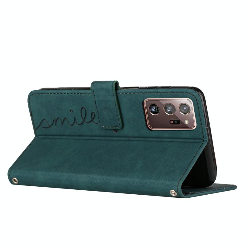 For Samsung Galaxy Note20 Ultra Skin Feel Heart Pattern Leather Phone Case With Lanyard(Green)