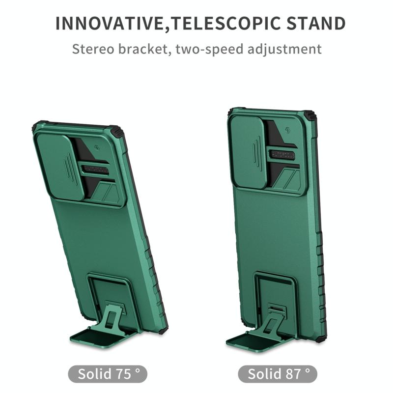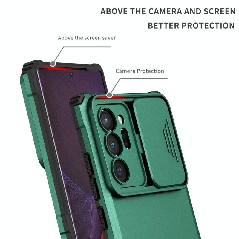 For Samsung Galaxy Note20 Ultra Stereoscopic Holder Sliding Camshield Phone Case(Green)