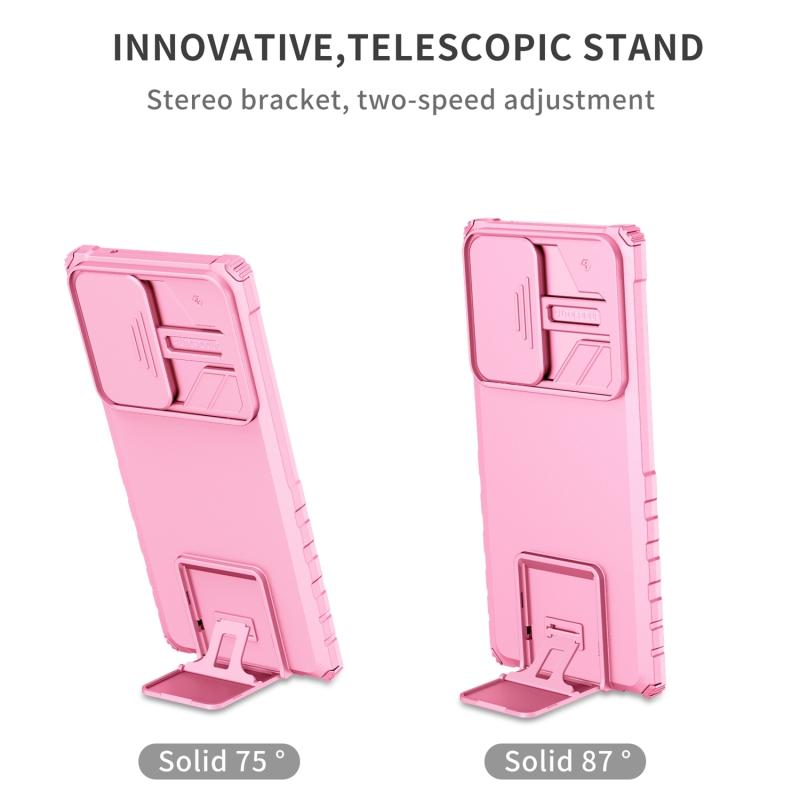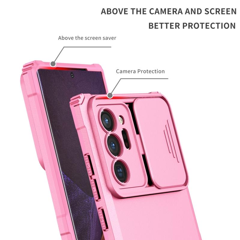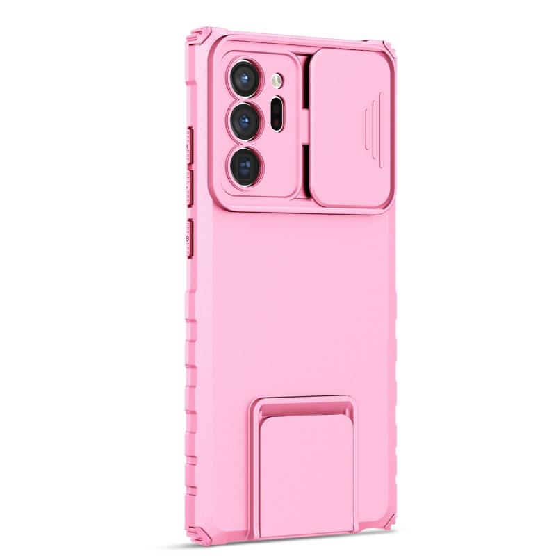 For Samsung Galaxy Note20 Ultra Stereoscopic Holder Sliding Camshield Phone Case(Pink)