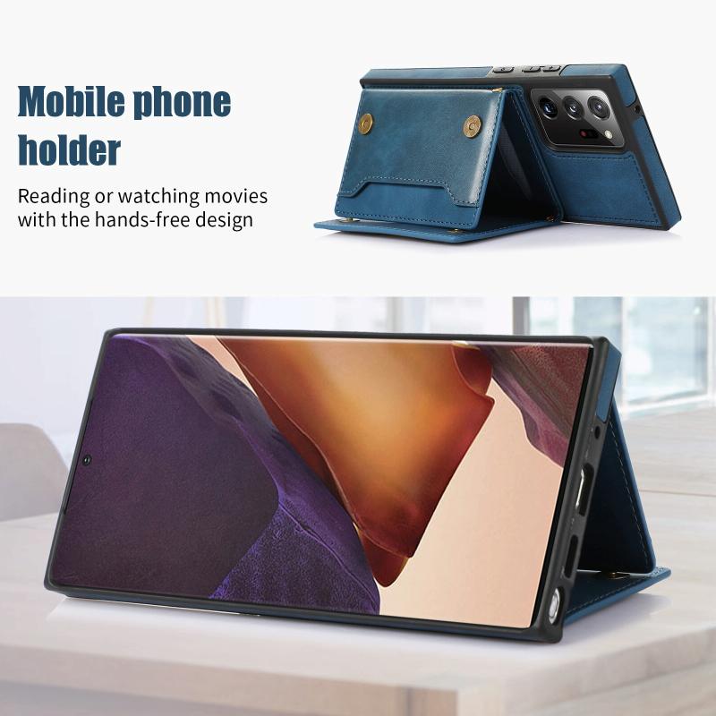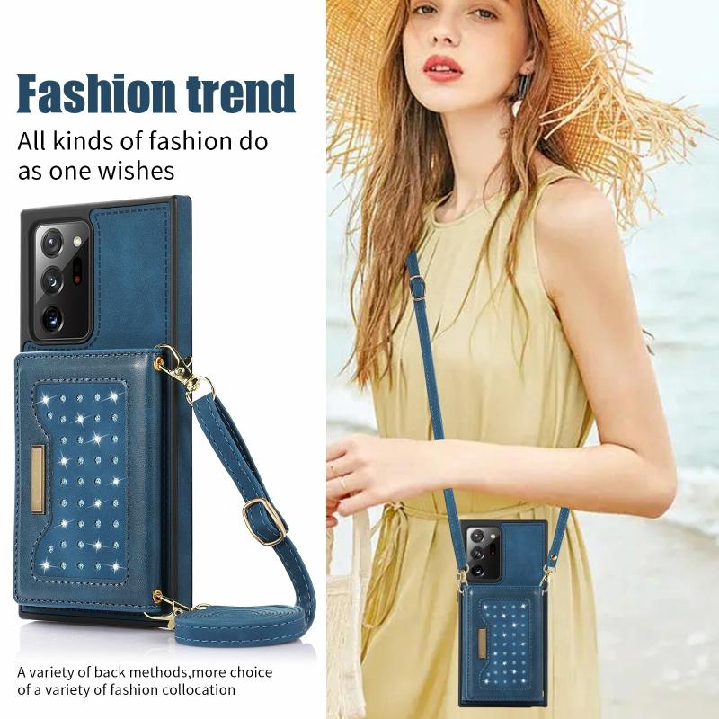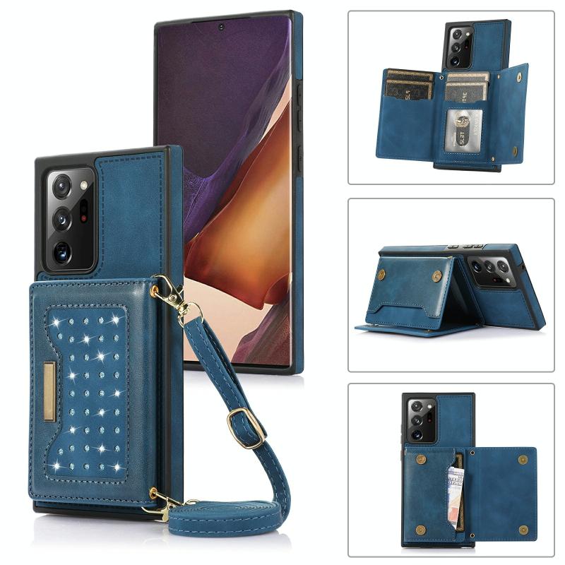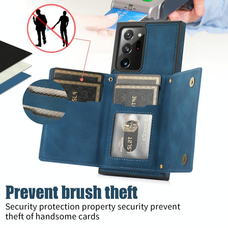 For Samsung Galaxy Note20 Ultra Three-fold RFID Leather Phone Case with Lanyard(Blue)