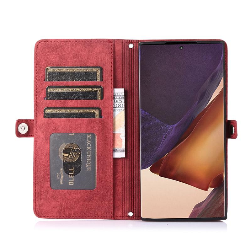 For Samsung Galaxy Note20 Ultra Zipper Card Slot Buckle Wallet Leather Phone Case(Red)