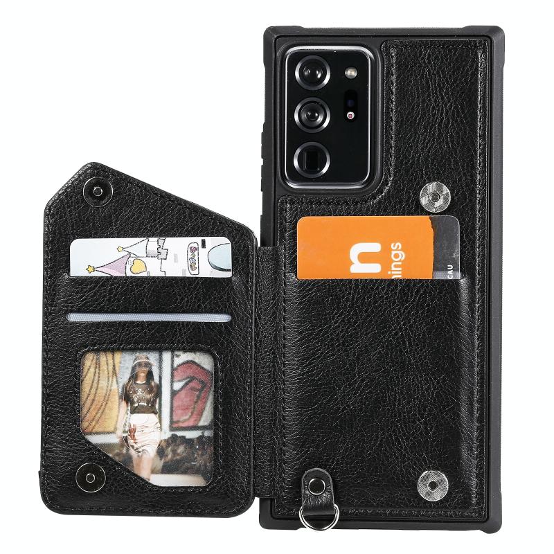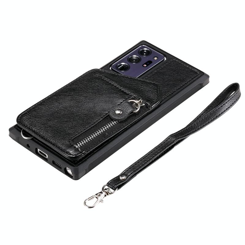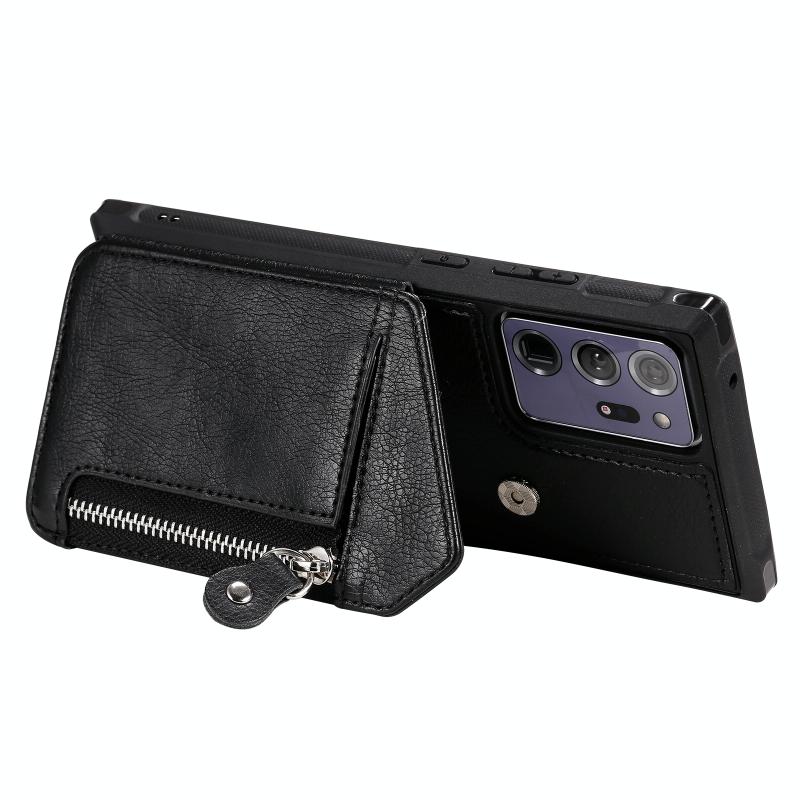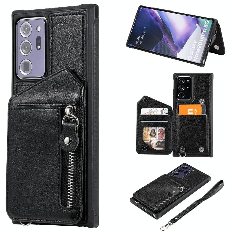For Samsung Galaxy Note20 Ultra Zipper Double Buckle Shockproof Protective Case with Stand & Photo Holder & Wallet Function(Black)