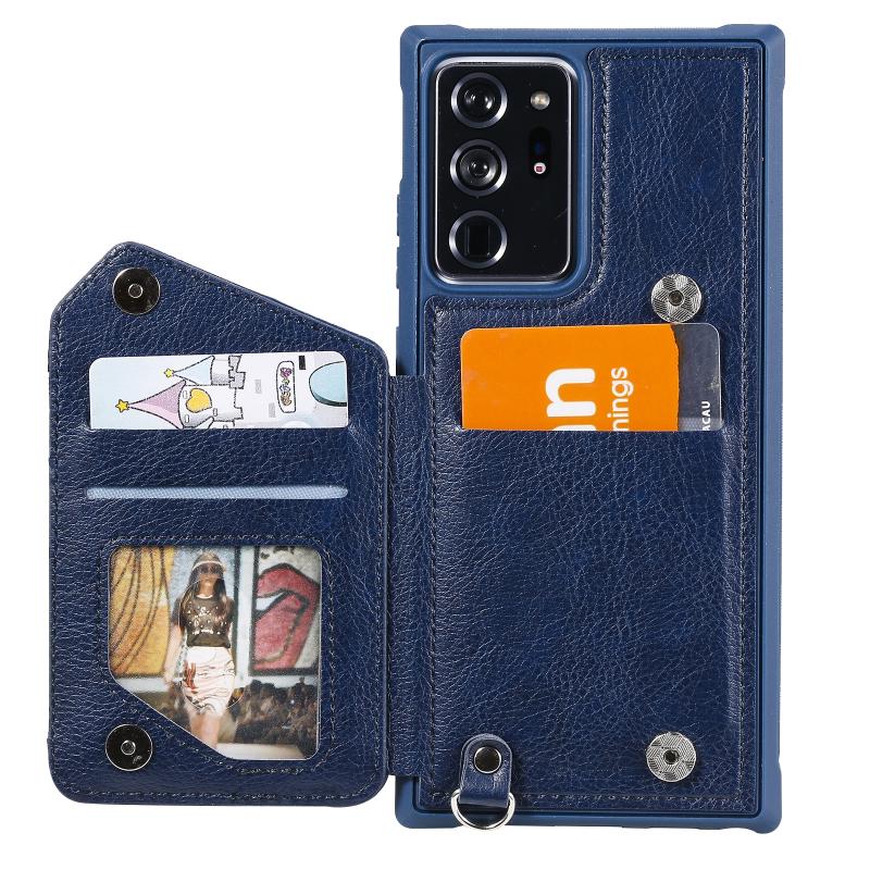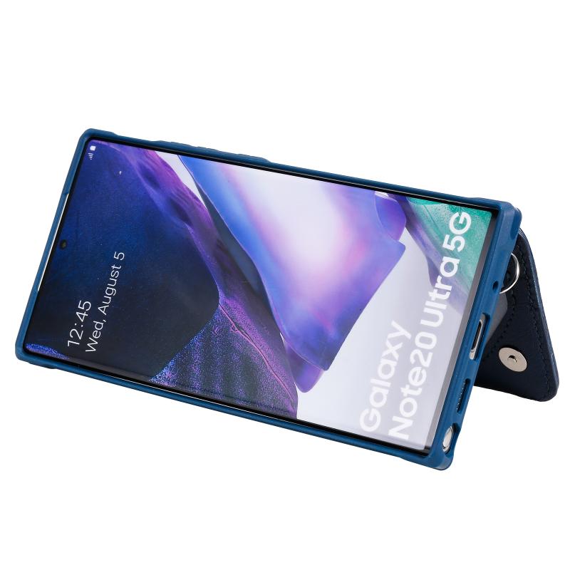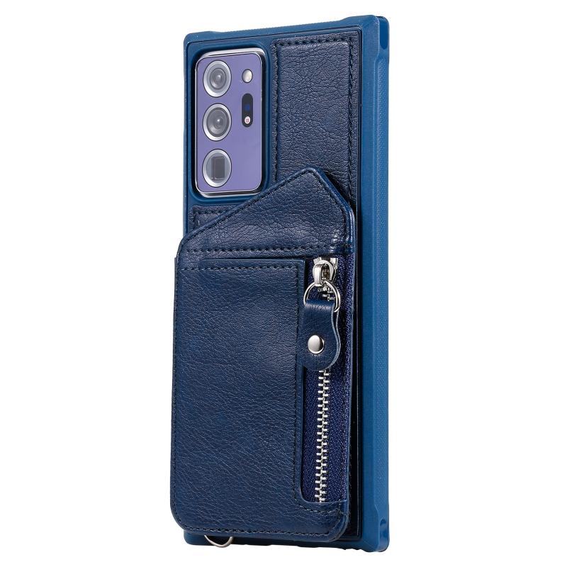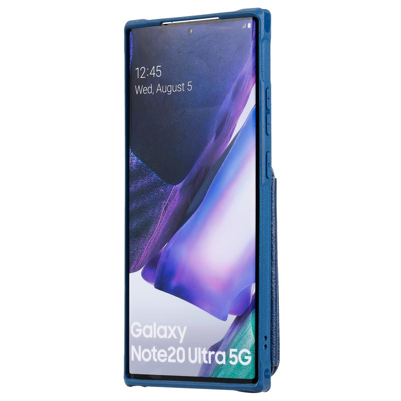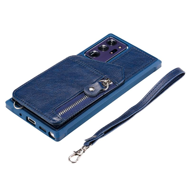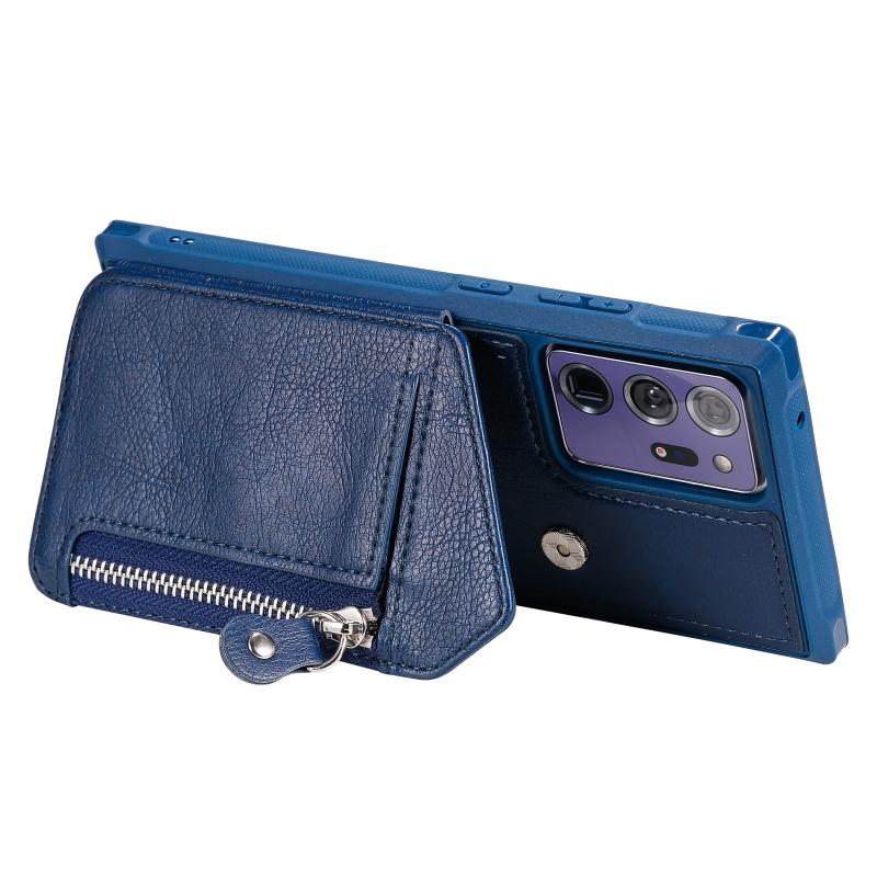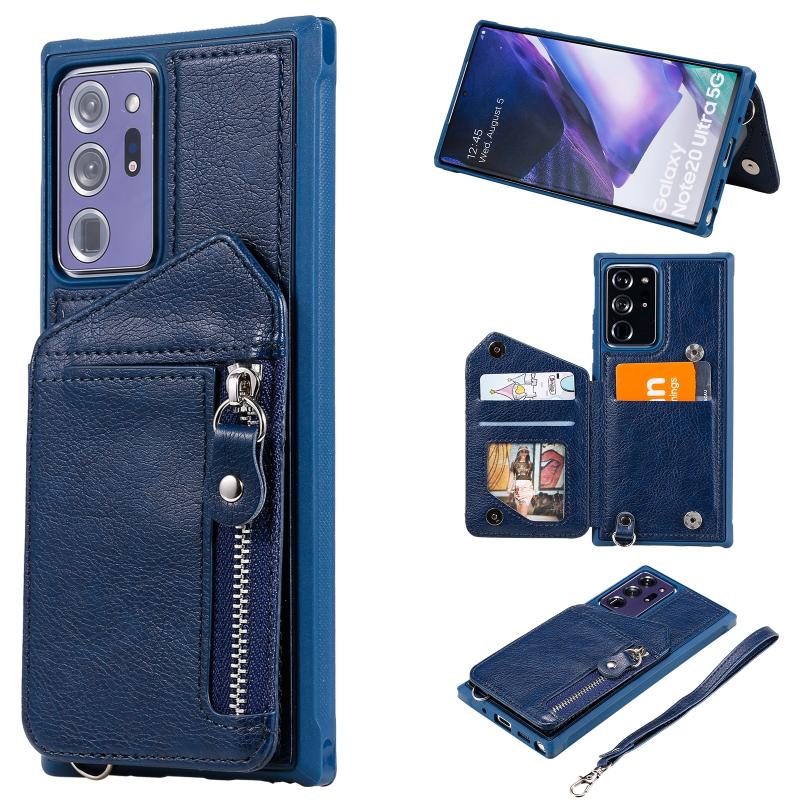 For Samsung Galaxy Note20 Ultra Zipper Double Buckle Shockproof Protective Case with Stand & Photo Holder & Wallet Function(Blue)