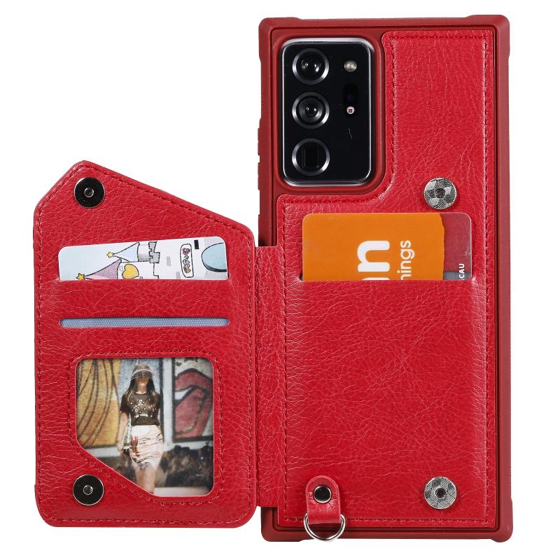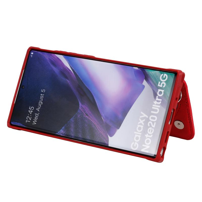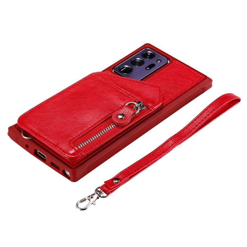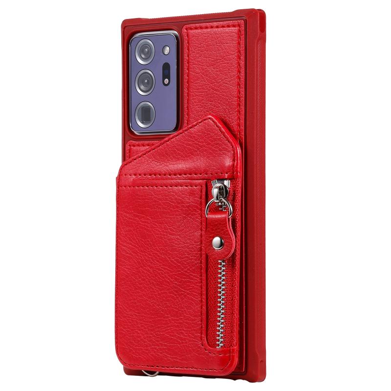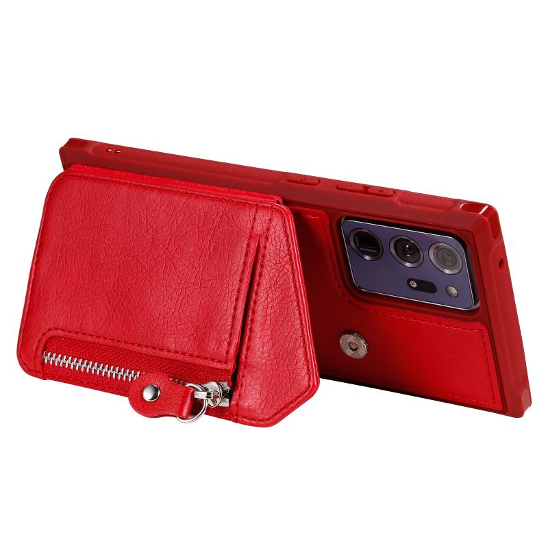 For Samsung Galaxy Note20 Ultra Zipper Double Buckle Shockproof Protective Case with Stand & Photo Holder & Wallet Function(Red)