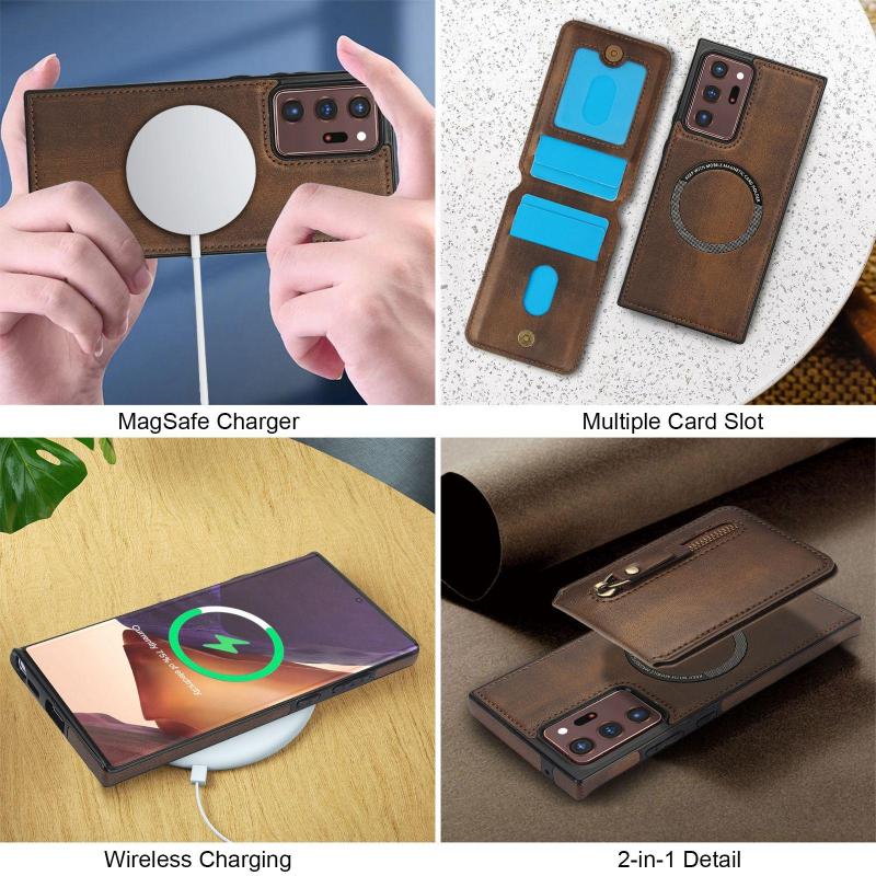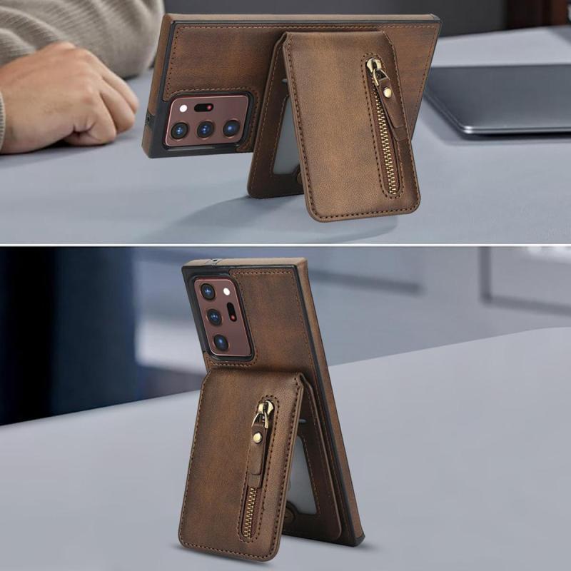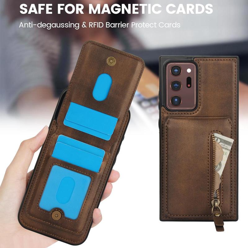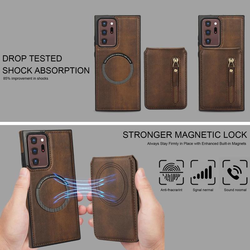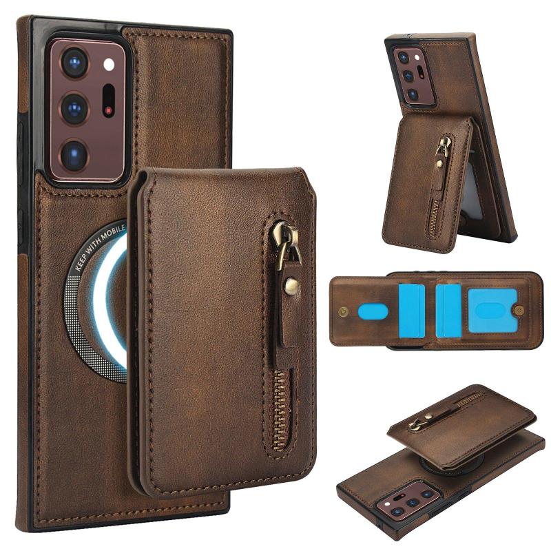 For Samsung Galaxy Note20 Ultra Zipper Wallet Split MagSafe Leather Back Phone Case(Brown)