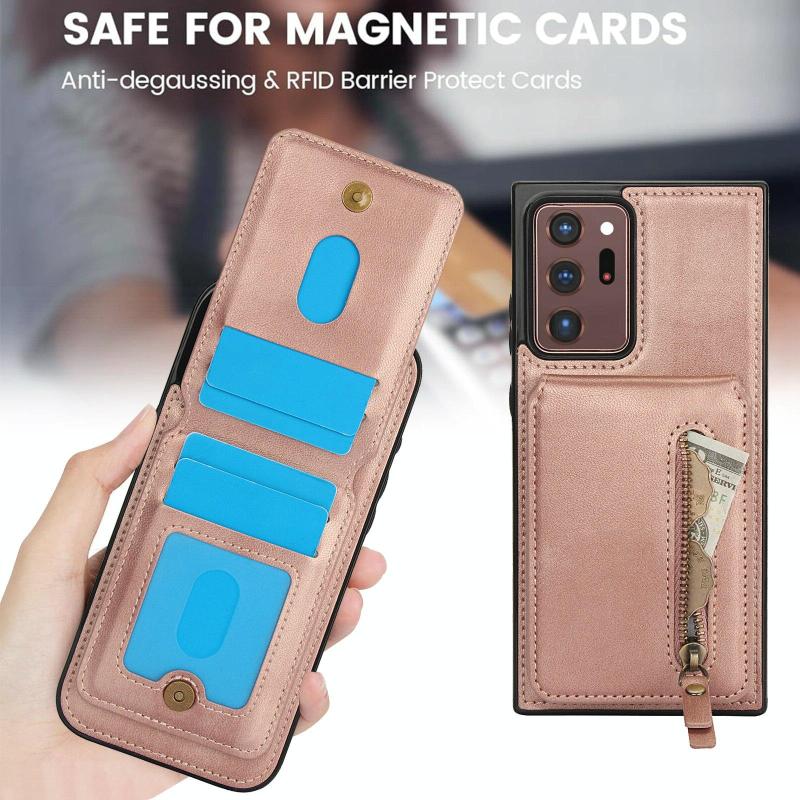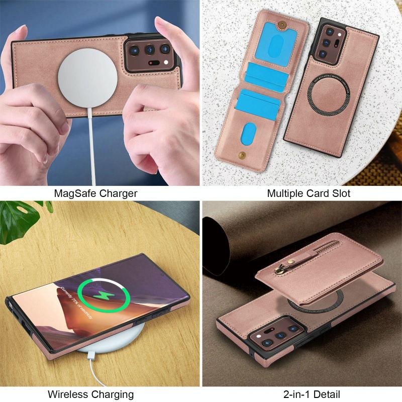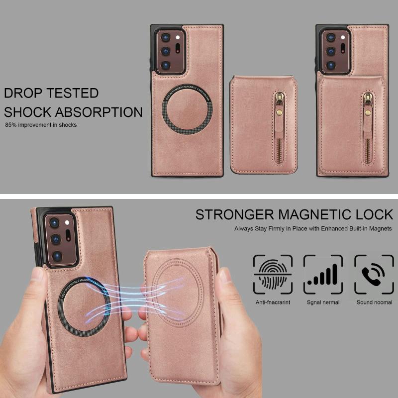 For Samsung Galaxy Note20 Ultra Zipper Wallet Split MagSafe Leather Back Phone Case(Rose Gold)