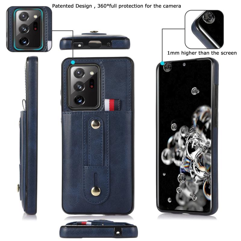 For Samsung Galaxy Note20 Wristband Kickstand Wallet Leather Phone Case(Blue)