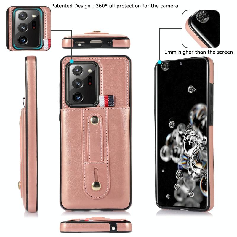 For Samsung Galaxy Note20 Wristband Kickstand Wallet Leather Phone Case(Rose Gold)