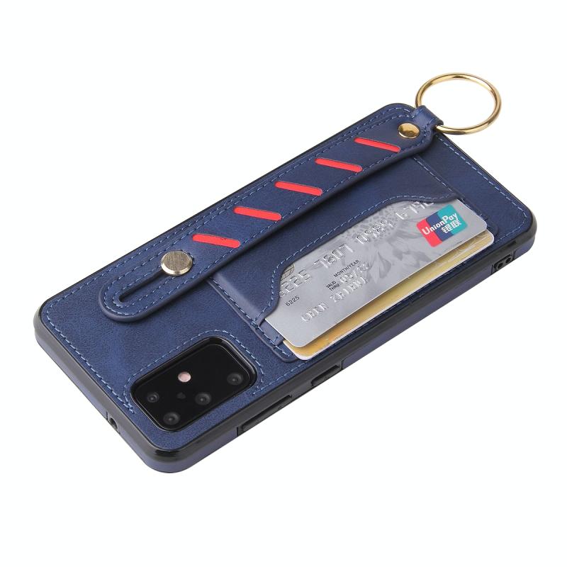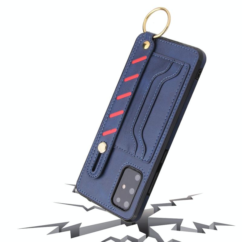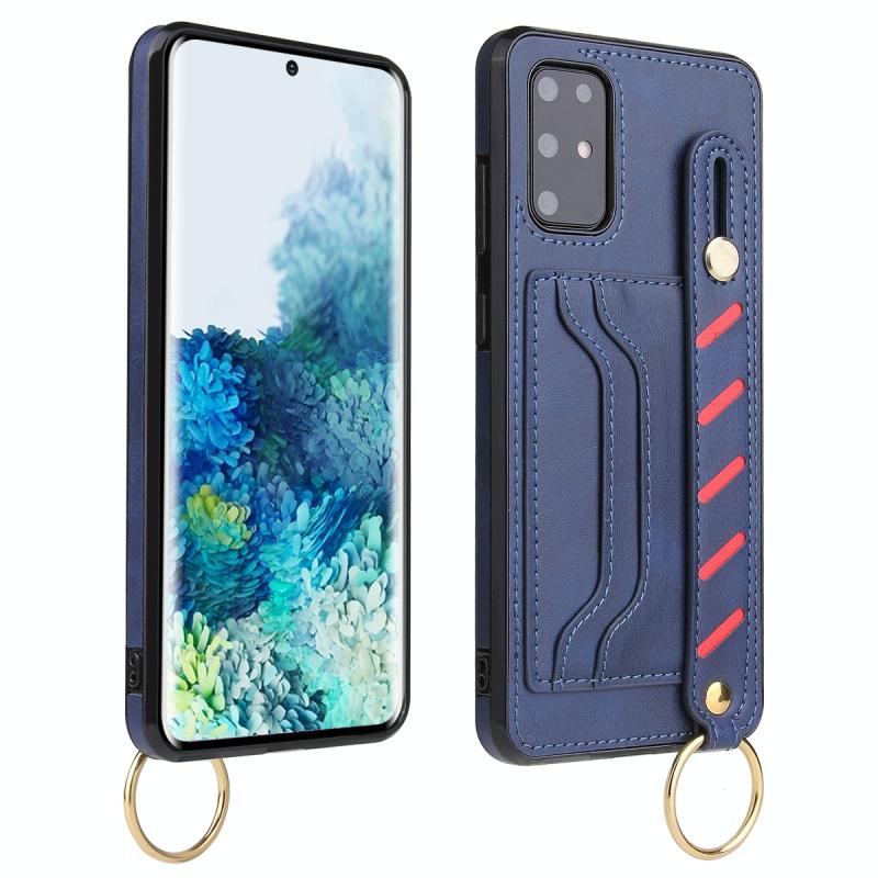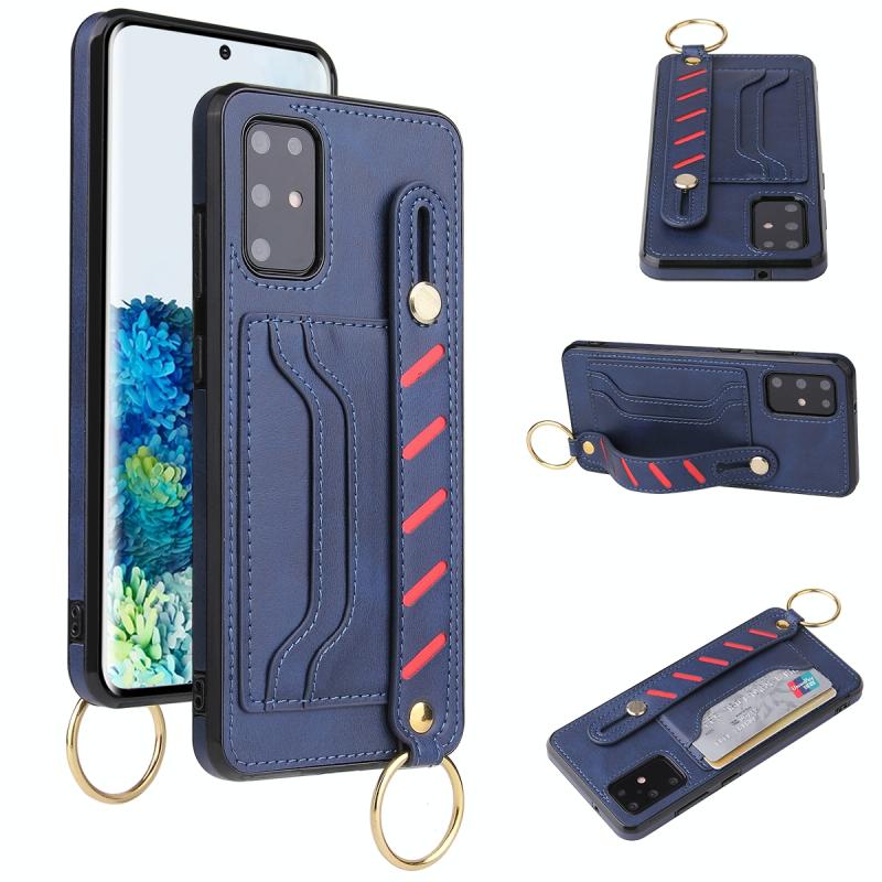 For Samsung Galaxy Note20 Wristband Wallet Leather Phone Case(Blue)