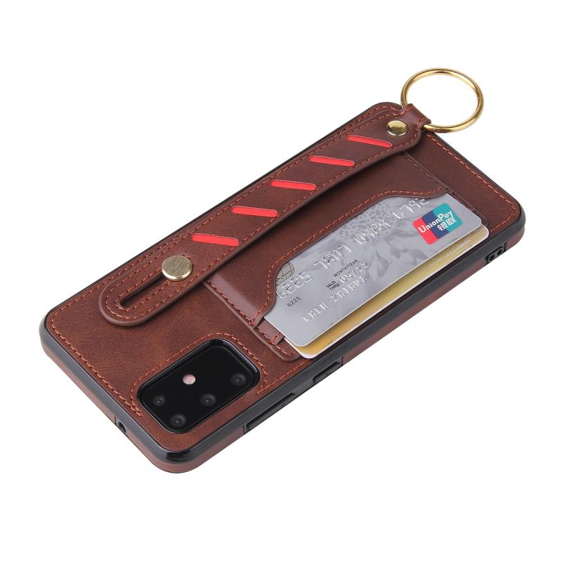 For Samsung Galaxy Note20 Wristband Wallet Leather Phone Case(Brown)
