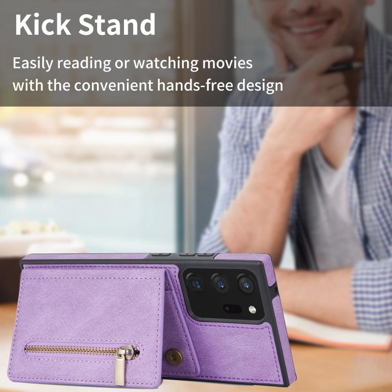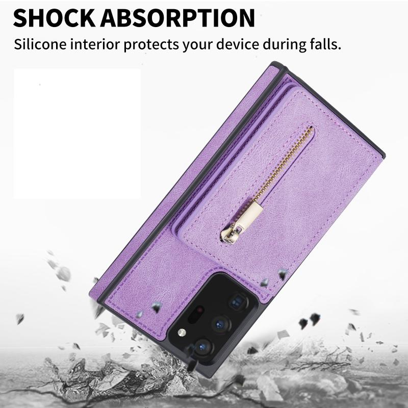 For Samsung Galaxy Note20 Zipper Card Holder Phone Case(Purple)