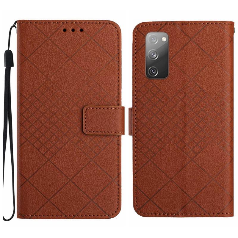 For Samsung Galaxy S20 FE 4G / 5G / 2022 Rhombic Grid Texture Leather Phone Case(Brown)