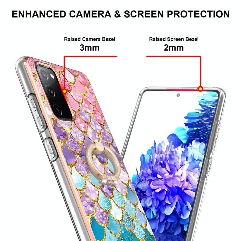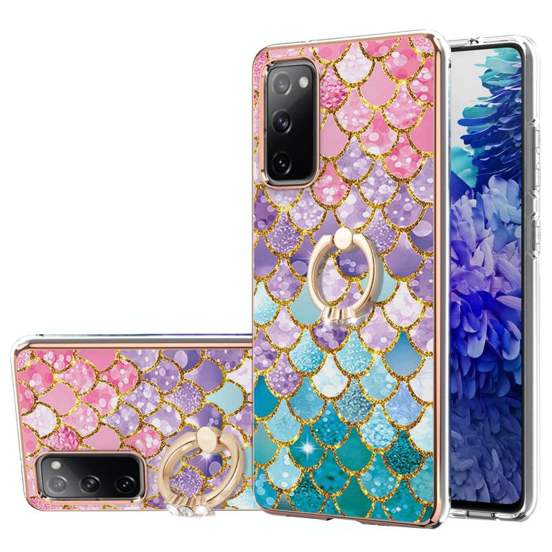 For Samsung Galaxy S20 FE 4G/5G Electroplating Pattern IMD TPU Shockproof Case with Rhinestone Ring Holder(Colorful Scales)