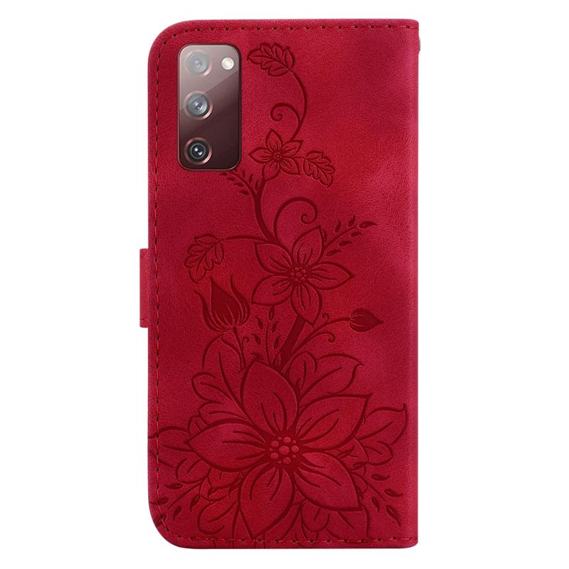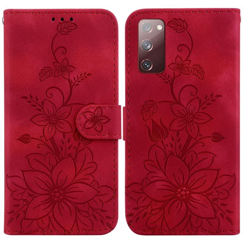 For Samsung Galaxy S20 FE 4G / 5G Lily Embossed Leather Phone Case(Red)