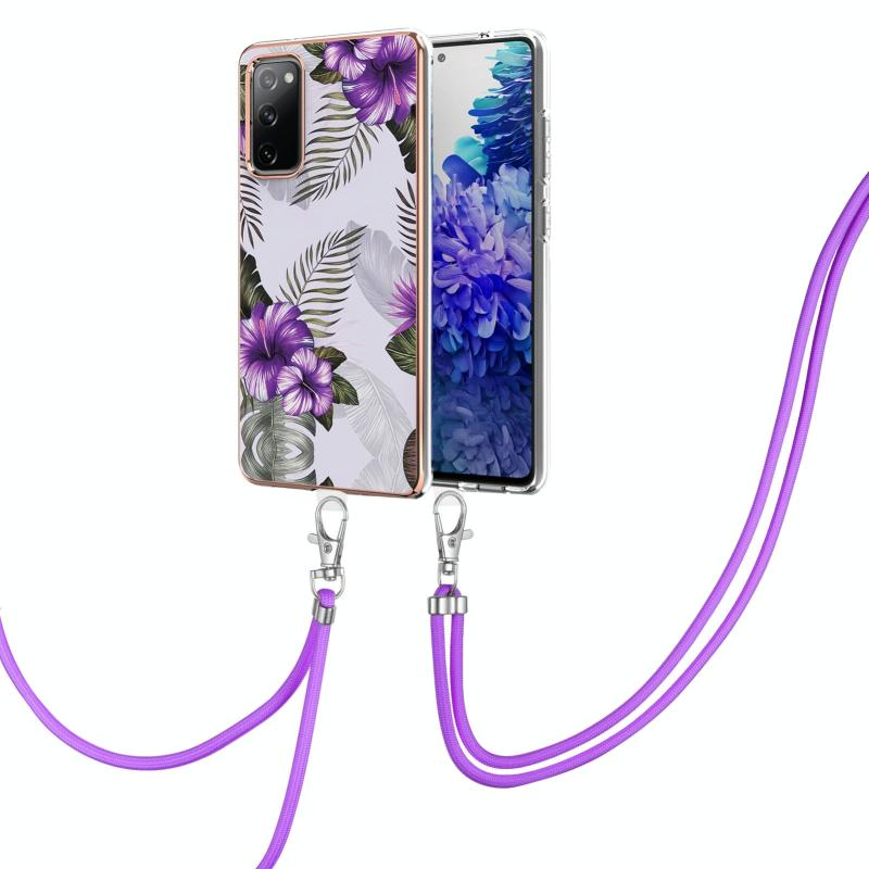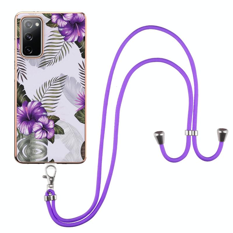 For Samsung Galaxy S20 FE 5G / 4G Electroplating Pattern IMD TPU Shockproof Case with Neck Lanyard(Purple Flower)