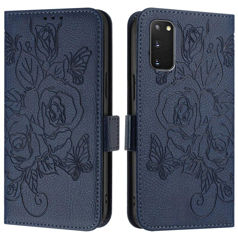 For Samsung Galaxy S20 FE 5G / 4G Embossed Rose RFID Anti-theft Leather Phone Case(Dark Blue)