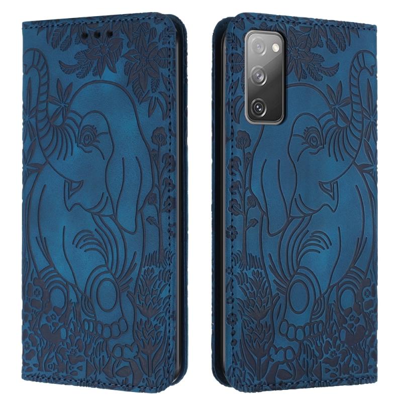 For Samsung Galaxy S20 FE 5G Retro Elephant Embossed Leather Phone Case(Blue)