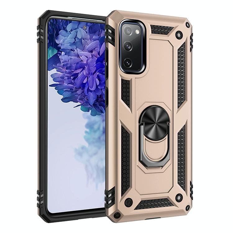 For Samsung Galaxy S20 FE 5G Shockproof TPU + PC Protective Case with 360 Degree Rotating Holder(Gold)