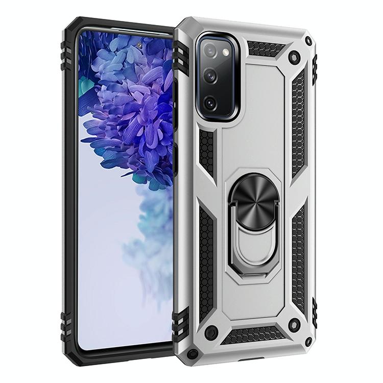 For Samsung Galaxy S20 FE 5G Shockproof TPU + PC Protective Case with 360 Degree Rotating Holder(Silver)