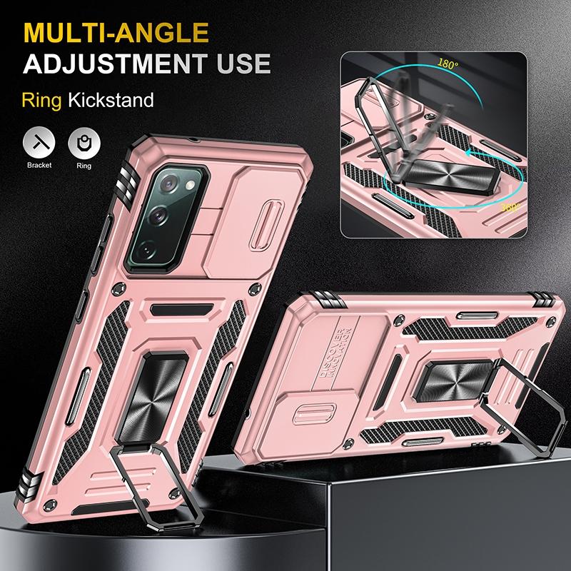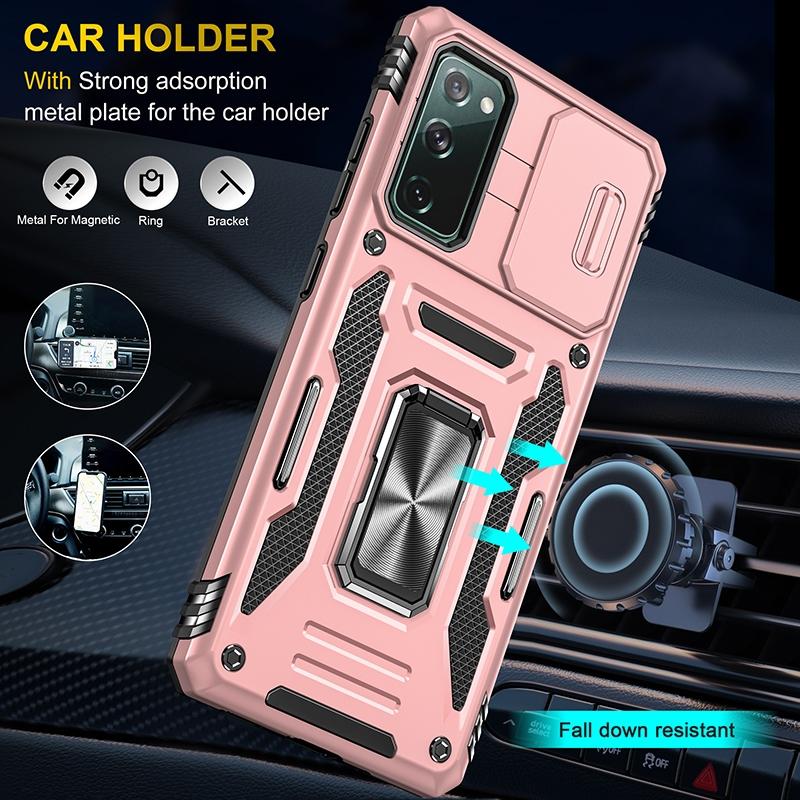 For Samsung Galaxy S20 FE Armor PC + TPU Camera Shield Phone Case(Rose Gold)