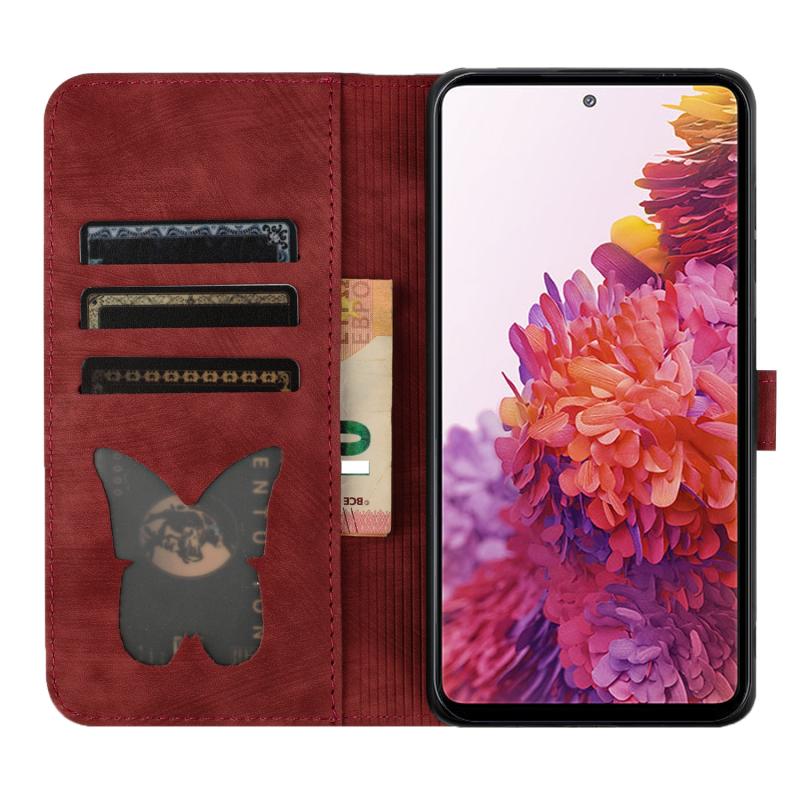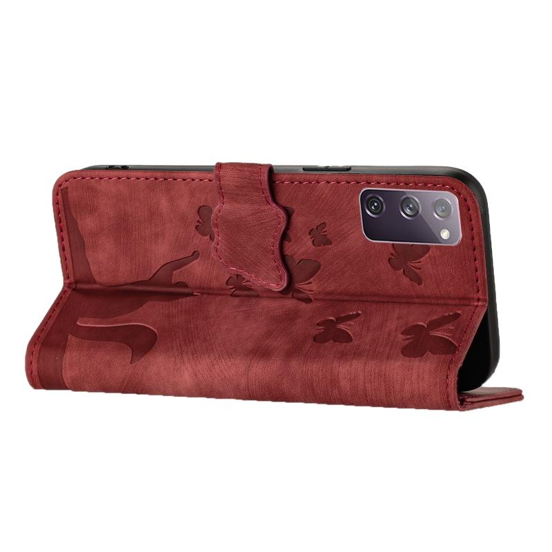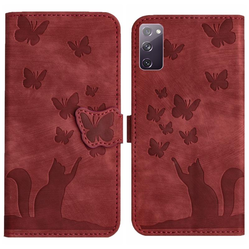 For Samsung Galaxy S20 FE Butterfly Cat Embossing Flip Leather Phone Case(Red)