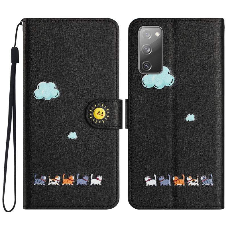 For Samsung Galaxy S20 FE Cartoon Cats Leather Phone Case(Black)