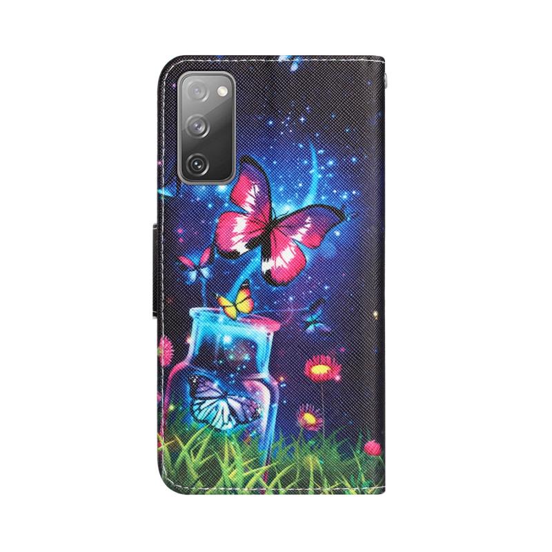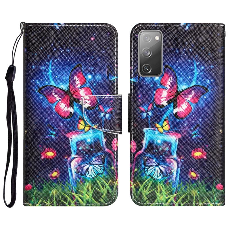 For Samsung Galaxy S20 FE Colored Drawing Leather Phone Case(Bottle Butterfly)