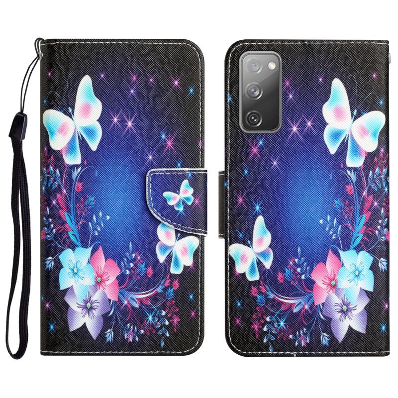 For Samsung Galaxy S20 FE Colored Drawing Leather Phone Case(Butterfly)