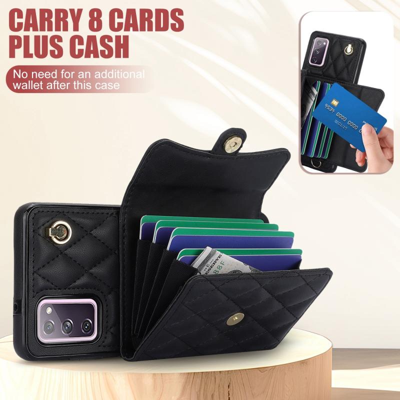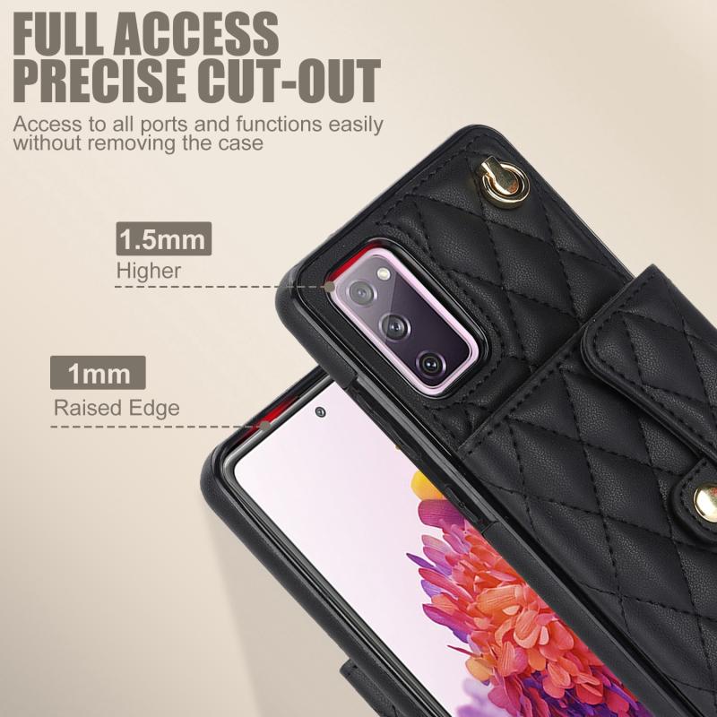 For Samsung Galaxy S20 FE Crossbody Rhombic Horizontal Wallet Leather Phone Case(Black)
