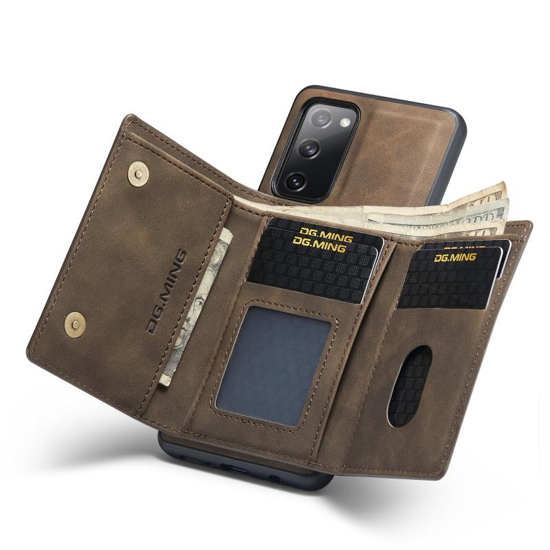 For Samsung Galaxy S20 FE DG.MING M1 Series 3-Fold Multi Card Wallet Back Cover Shockproof Case with Holder Function(Coffee) (DG.MING)
