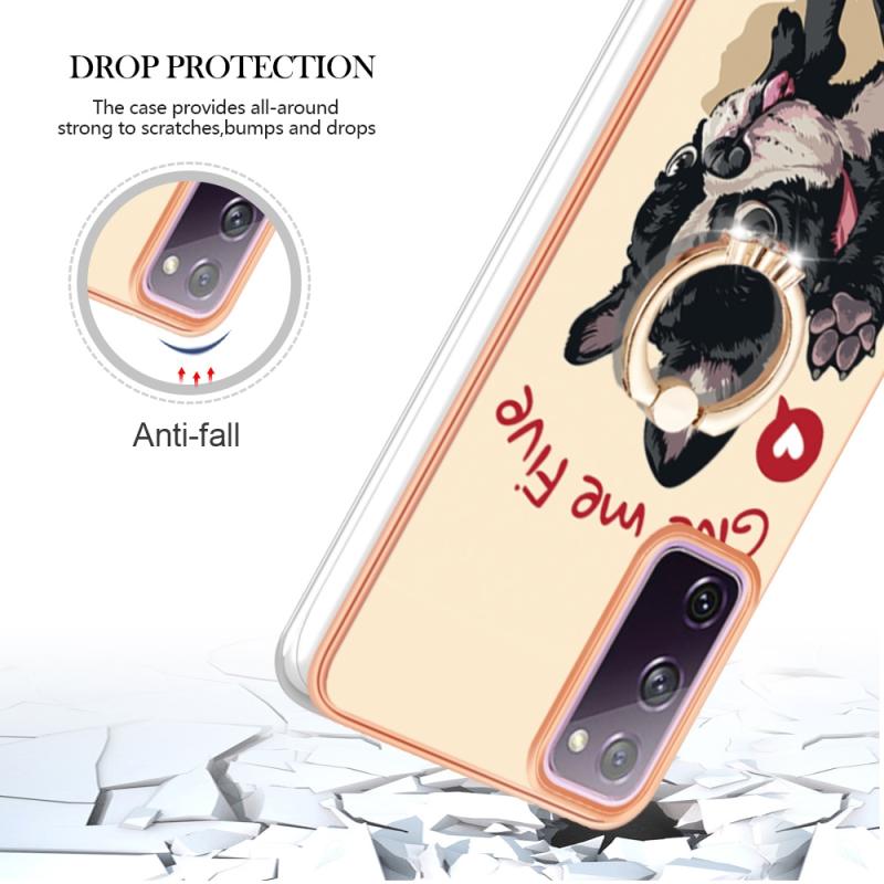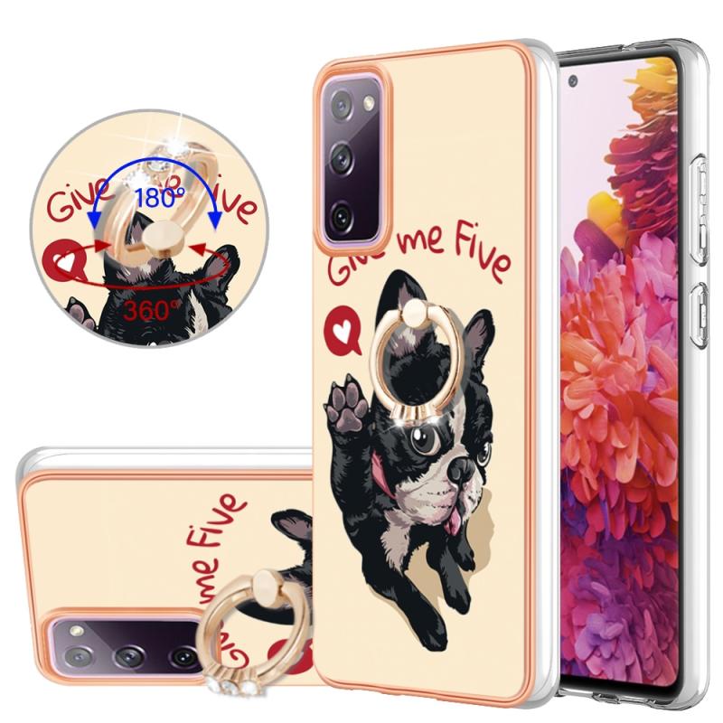 For Samsung Galaxy S20 FE Electroplating Dual-side IMD Phone Case with Ring Holder(Lucky Dog)