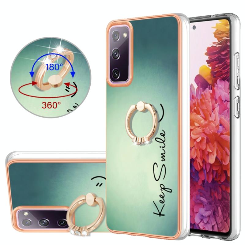 For Samsung Galaxy S20 FE Electroplating Dual-side IMD Phone Case with Ring Holder(Smile)