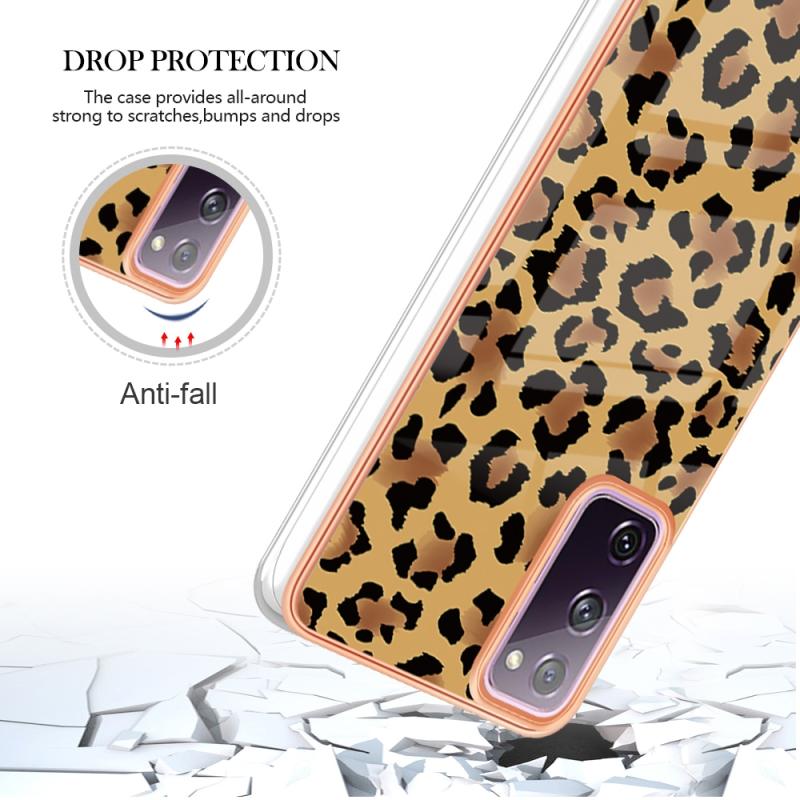 For Samsung Galaxy S20 FE Electroplating Marble Dual-side IMD Phone Case(Leopard Print)