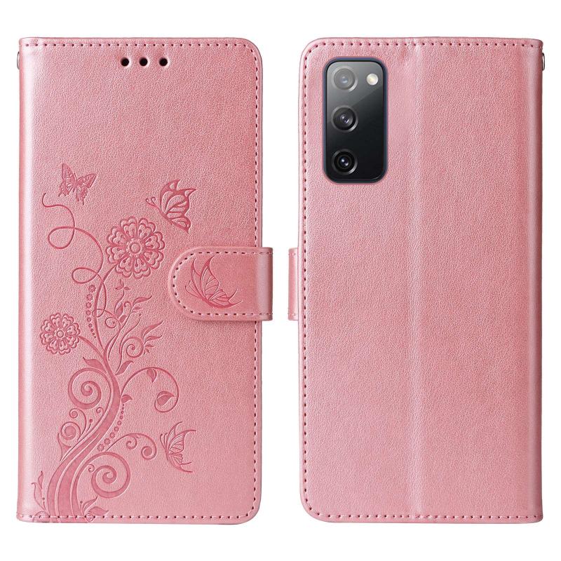 For Samsung Galaxy S20 FE Embossed Butterfly Flowers Leather Phone Case(Rose Gold)