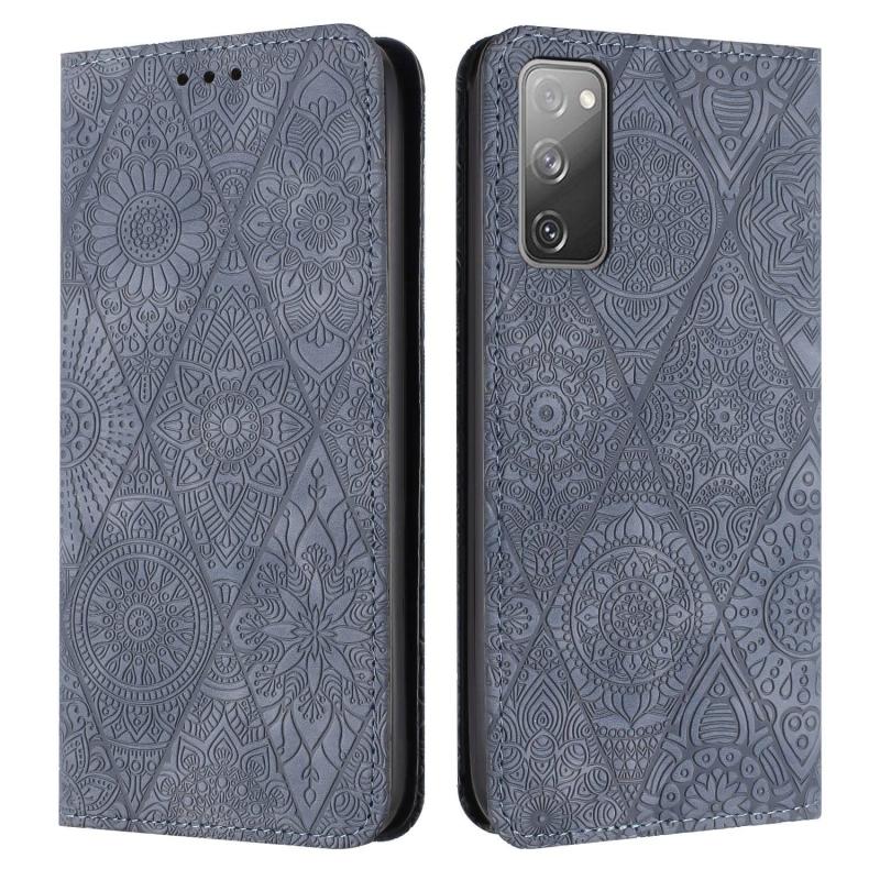 For Samsung Galaxy S20 FE Ethnic Embossed Adsorption Leather Phone Case(Grey)