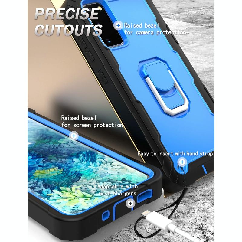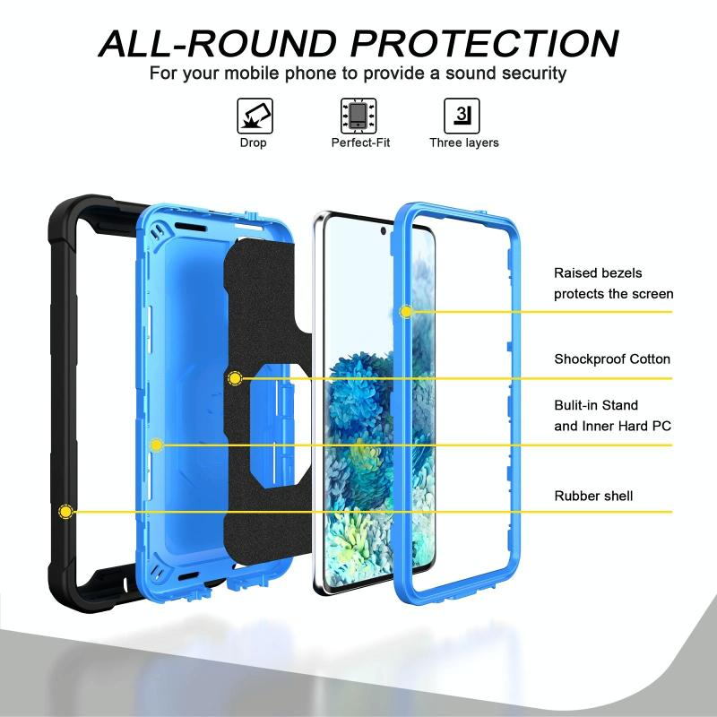 For Samsung Galaxy S20 FE / FE 5G PC + Rubber 3-layers Shockproof Protective Case with Rotating Holder(Black + Blue)