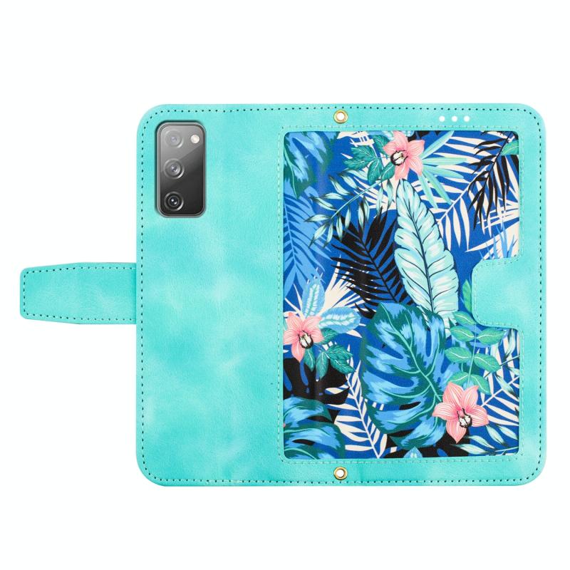 For Samsung Galaxy S20 FE Floral Pattern Leather Phone Case with Lanyard(Green)