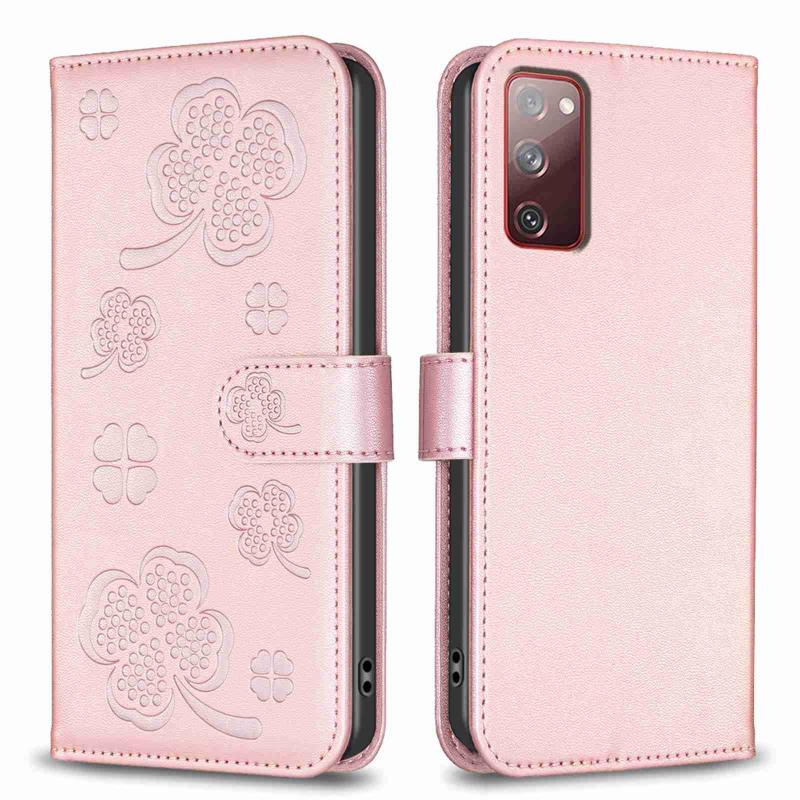 For Samsung Galaxy S20 FE Four-leaf Embossed Leather Phone Case(Pink)