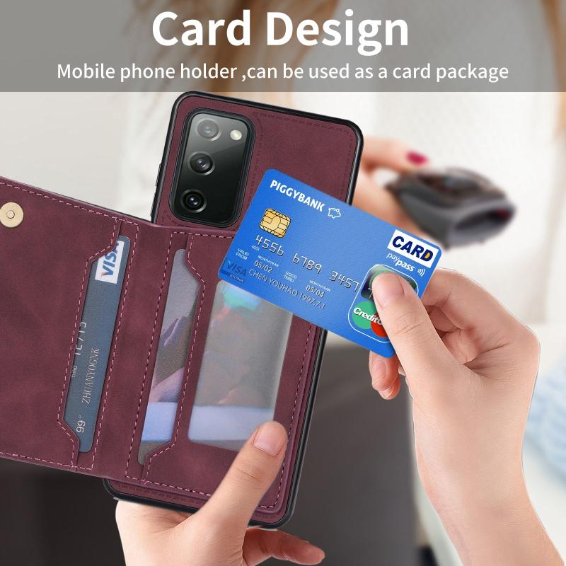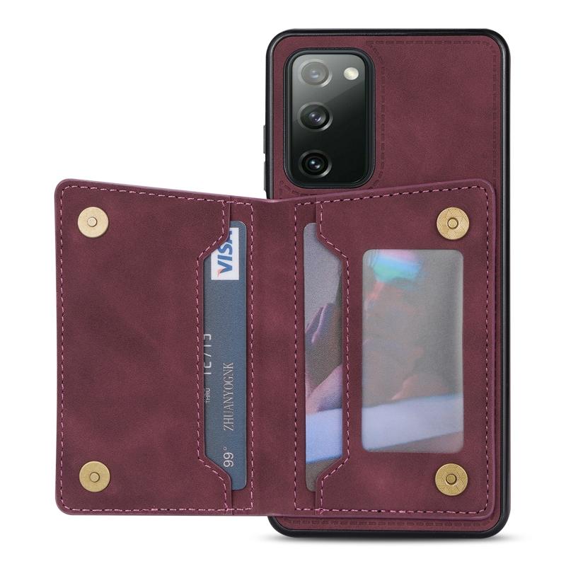 For Samsung Galaxy S20 FE Line Card Holder Phone Case(Wine Red)