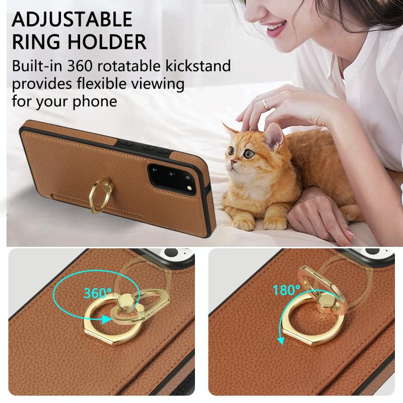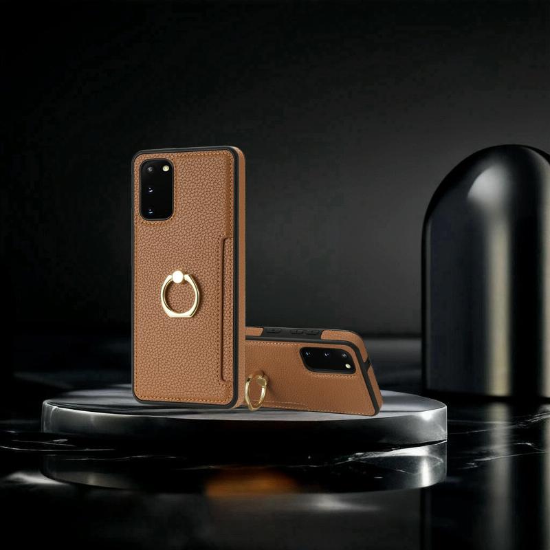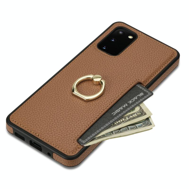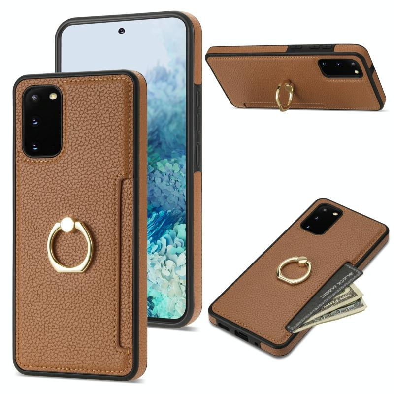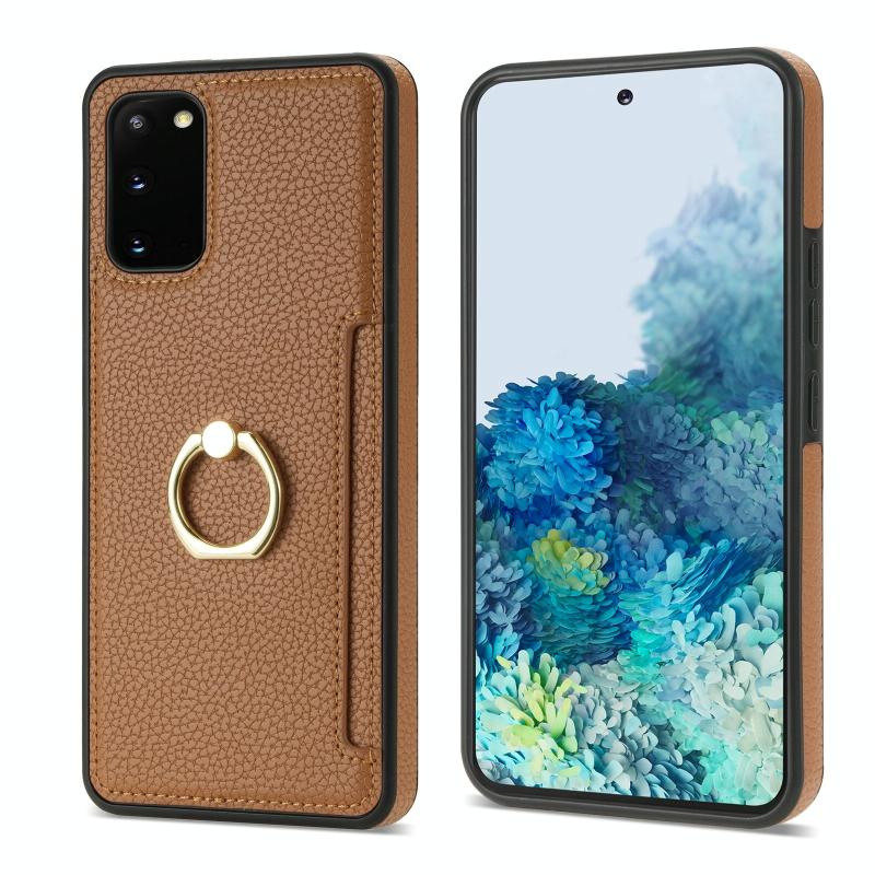 For Samsung Galaxy S20 FE Ring Card Litchi Leather Back Phone Case(Brown)