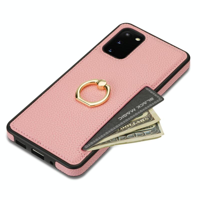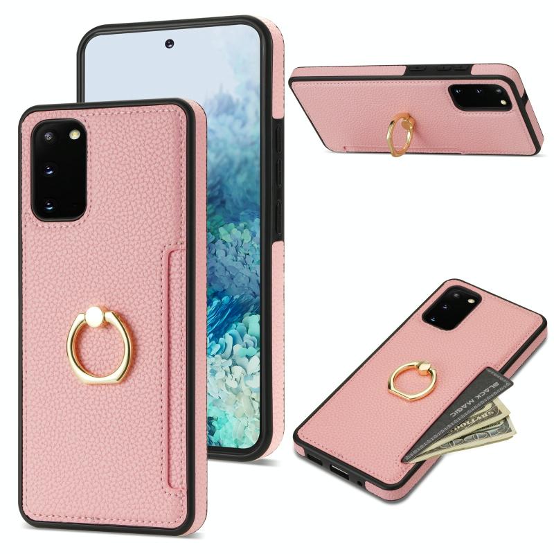 For Samsung Galaxy S20 FE Ring Card Litchi Leather Back Phone Case(Pink)