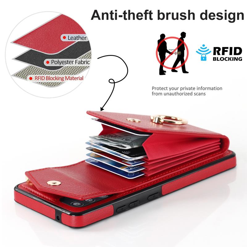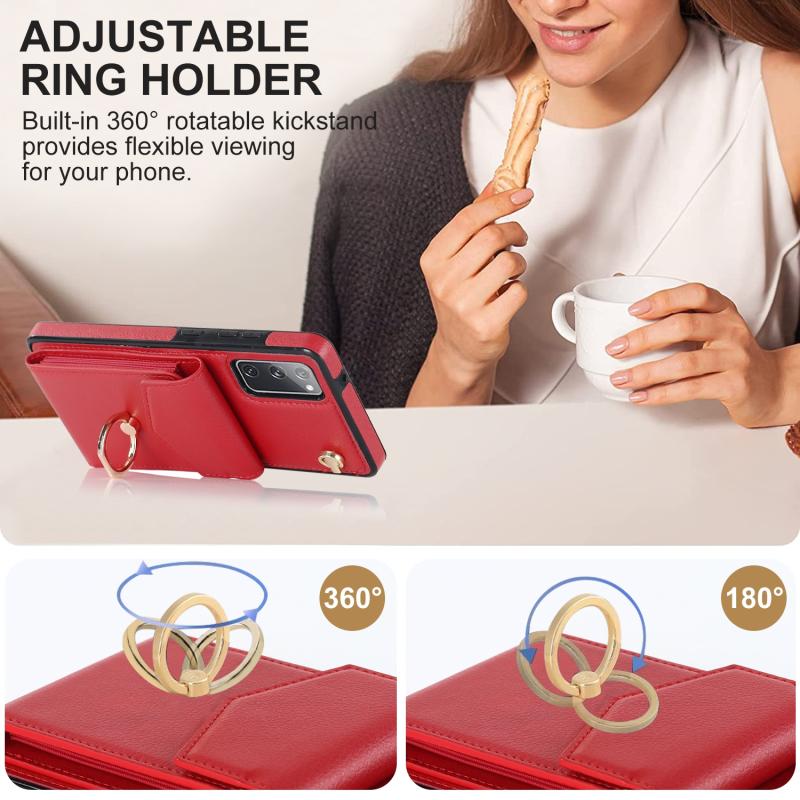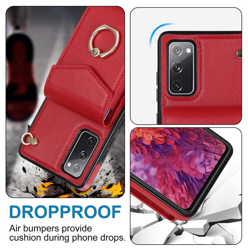 For Samsung Galaxy S20 FE Ring Holder RFID Card Slot Phone Case(Red)